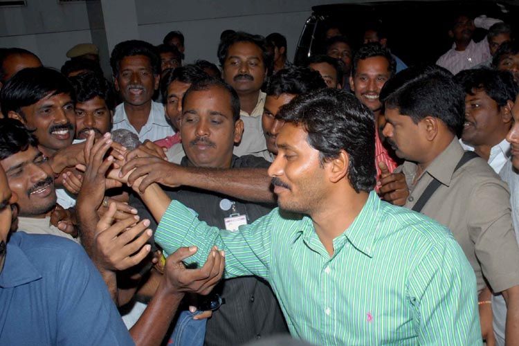 Kadapa MP YS Jaganmohan Reddy greets his supporters after resigning from the Congress party outside his residence at Banjara Hills in Hyderabad on Monday. INN Photos