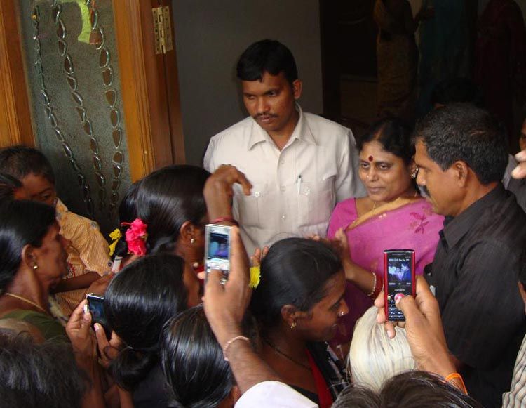 Jagan's mother Vijayamma speaking to women who visited the Idupulapaya Estate to reaffirm their faith and support to YSR family on Tuesday.