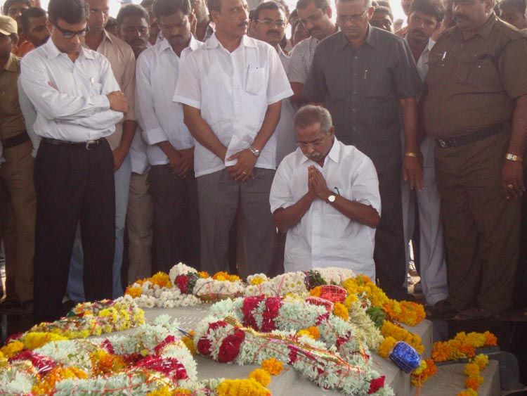 YSR's brother MLC YS Vivekananda Reddy paying tributes to YSR at his samadhi in Idupulapaya estate on Tuesday.