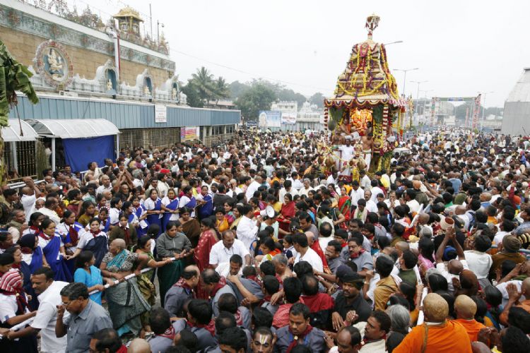 Processional deity of Lord Malayappaswamy along with His consorts were taken out in procession on Golden Chariot around four mada streets in connection with Vaikunta Ekadasi at Tirumala on Friday.