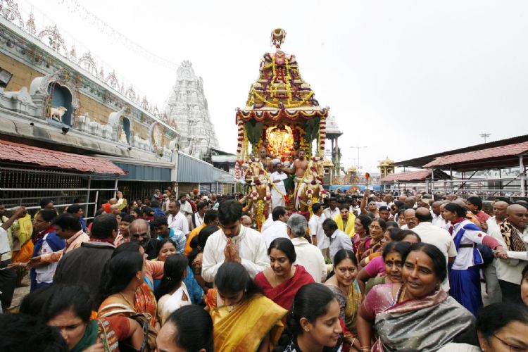Processional deity of Lord Malayappaswamy along with His consorts were taken out in procession on Golden Chariot around four mada streets in connection with Vaikunta Ekadasi at Tirumala on Friday.