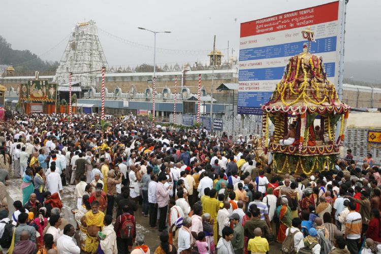 Processional deity of Lord Malayappaswamy along with His consorts were taken out in procession on Golden Chariot around four mada streets in connection with Vaikunta Ekadasi at Tirumala on Friday.