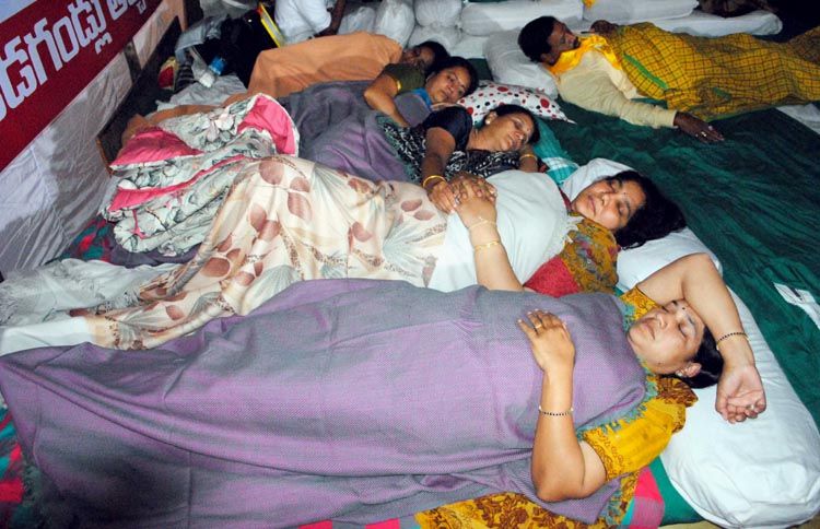 TDP chief Chandrababu Naidu along with a few MLA's, party leaders launched the indefinite hunger strike on Friday morning at the new MLA quarters at Adarsh Nagar after paying homage to TDP founder-president N T Rama Rao at the NTR Ghat, Mahatma Gandhi's statue at the Assembly and B R Ambedkar at Tank Bund.
