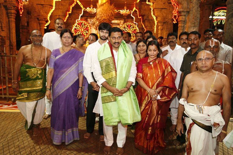 Chief Minister N. Kiran Kumar Reddy visited Sri Vari Temple, Tirumala on Friday. On his arrival at Sri Vari Temple, the priests and officials have given a warm reception and led to sanctum sanctorium. After darshan of lord the veda pandits of the temple have blessed him with Vedic Hymns at Ranganayakula Mandapam. Ministers Galla Aruna Kumari, J.Krishna Rao, TTD EO I.Y.R.Krishna Rao and others were present.