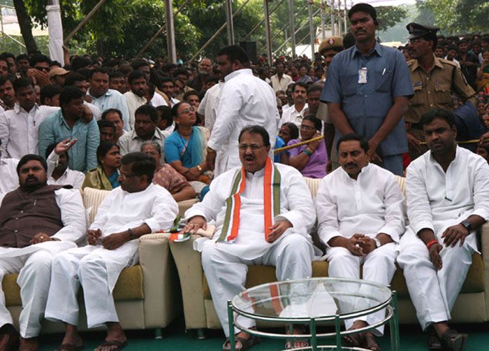 Chief Minister N Kiran Kumar Reddy offers floral tribute to senior Congress leader and former minister P Janardhan Reddy on the occasion of his third death anniversary at Khairtabad in Hyderabad on Tuesday. INN Photos