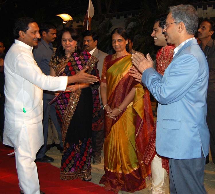 Home Minister Sabitha Indra Reddy welcomes Chief Minister N Kiran Kumar Reddy, Additional DGP Tejdeep Kaur Menon, Commissioner of Police AK Khan, Indian Idol Sreeram to the Swagatham-2011, a function held to herald the arrival of the New Year at Lumbini Park in Hyderabad on Thursday. INN Photos