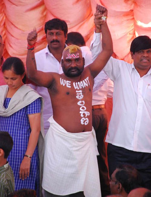 Telangana leaders express anguish and disappointment at SKC report at a dharna held by TJAC in Indira Park, Hyderabad on Thursday.