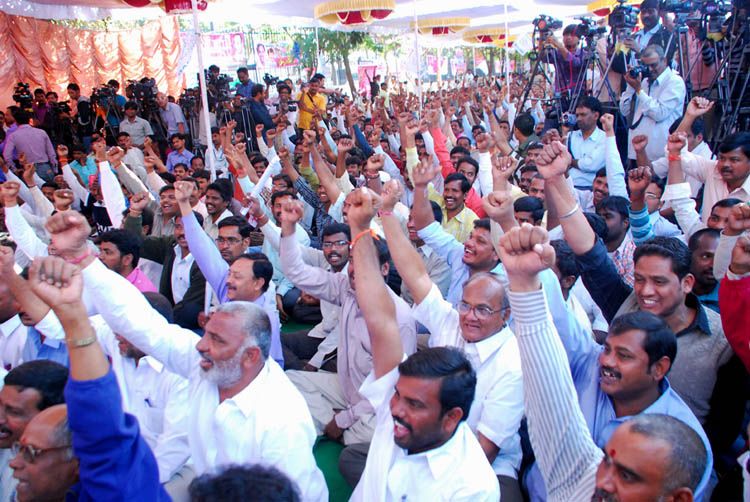 Telangana leaders express anguish and disappointment at SKC report at a dharna held by TJAC in Indira Park, Hyderabad on Thursday.