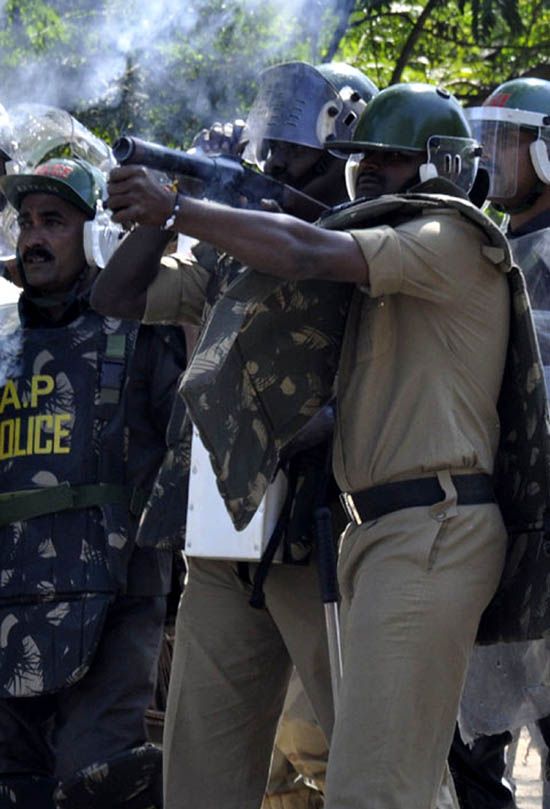 Violent protests against the Srikrishna Committee's report on the formation of Telangana intensified at the Osmania University campus on Thursday evening. The police had to resort to lathi-charge, tear gas and fire rubber pellets at the agitating students. The police personnel deployed at the university had to fire in the air to quell the protests.