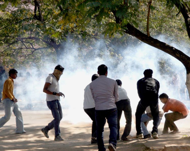 Violent protests against the Srikrishna Committee's report on the formation of Telangana intensified at the Osmania University campus on Thursday evening. The police had to resort to lathi-charge, tear gas and fire rubber pellets at the agitating students. The police personnel deployed at the university had to fire in the air to quell the protests.