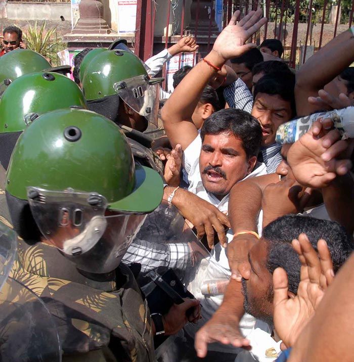 Telangana Students Joint Action Committee members protest at Osmania campus on Friday. INN Photos