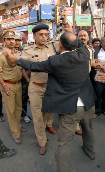 JAC of Telangana Lawyers protesting police presence near Osmania campus. Later they were forcibly taken into cutody by police at Osmania campus on Friday.