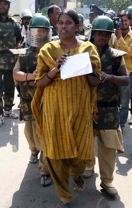 Women members of the Telangana Political Joint Action Committee and other Telangana protagonists being arrested by police after they launched a silent protest, demanding that the paramilitary forces are withdrawn, at Osmania University in Hyderabad on Saturday. INN Photos