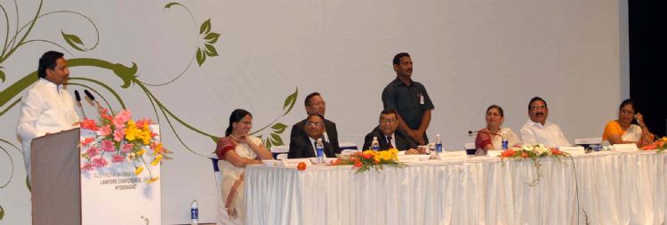 Chief Minister N Kiran Kumar Reddy lights a lamp to mark the inauguration of the All India Women Lawyers Conference at Global Peace Auditorium Shanti Sarovar, Brahma Kumaris, Gachchiibowli in Hyderabad on Saturday. INN Photos