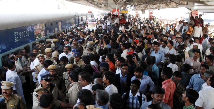 Former Kadapa MP YS Jaganmohan boards a special train on his way to New Delhi for his one-day Jal Deeksha, a protest to be staged at Jantar Mantar on January 11 to highlight the adverse impact of the Krishna Water Dispute Tribunal verdict, at Secunderabad Railway Station on Sunday. INN Photos