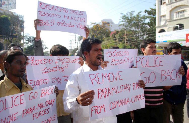ABVP activists take out a silent protest march to Osmania University to press for the withdrawal of forces from Telangana region near the campus in Hyderabad on Sunday. INN Photos