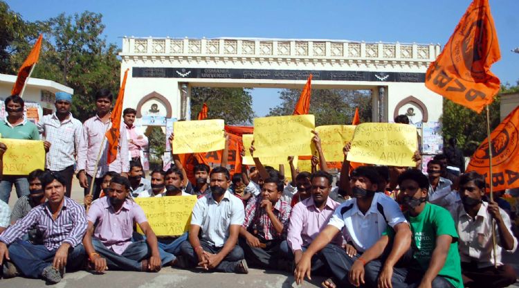 ABVP activists take out a silent protest march to Osmania University to press for the withdrawal of forces from Telangana region near the campus in Hyderabad on Sunday. INN Photos
