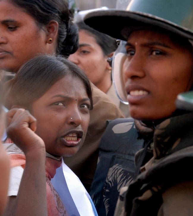 Students burn an effigy of the Central government as part of the protests demanding a separate Telangana state at the Osmania University campus in Hyderabad on Monday. INN Photos