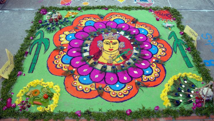 TeluguPeople.com wishes a Happy Sankranthi to everyone! Sankranthi Rangoli Competitions were held in Hyderabad and the Rangoli shown here depicts the Sankranthi Lakshmi. INN Photos