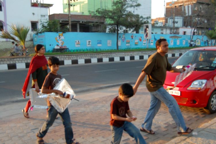 Families enjoy the Sankranti holiday by flying kites at Necklace Road in Hyderabad. INN Photos