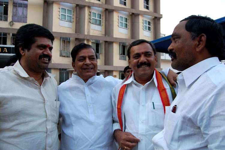 Praja Rajyam Party MLAs wait for their colleagues before meeting Chief Minister N Kiran Kumar Reddy at the state Secretariat in Hyderabad on Wednesday. INN Photos.