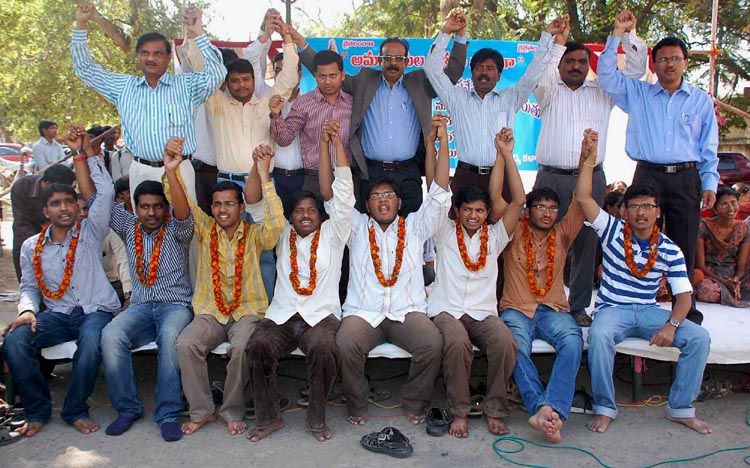 Students of Osmania Medical College stage a protest for separate Telangana state at Koti in Hyderabad on Friday. INN Photos