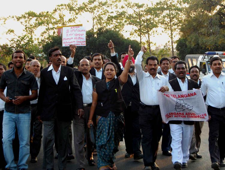Advocate JAC members arrive to watch the film ‘Jai Bolo Telangana’ which was released across the world at Prasad IMAX Theatre, Necklace Road in Hyderabad on Friday INN Photos