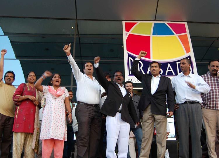 Advocate JAC members arrive to watch the film ‘Jai Bolo Telangana’ which was released across the world at Prasad IMAX Theatre, Necklace Road in Hyderabad on Friday INN Photos