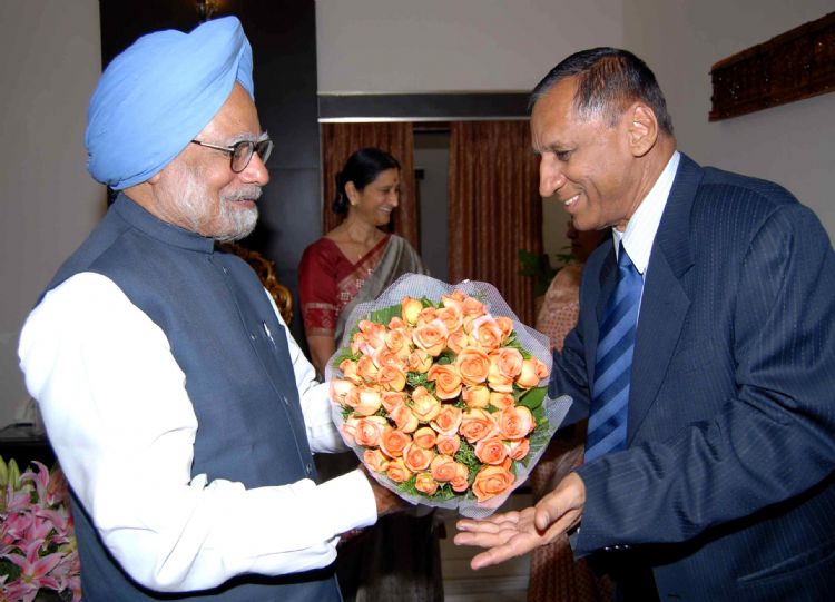 Governor Narasimhan along with his wife welcomes Prime Minister Dr.Manmohan Singh with a bouquet at Raj Bhavan on Saturday. Singh will be addressing 17 th Commonwealth Law Conference on Sunday in the city.