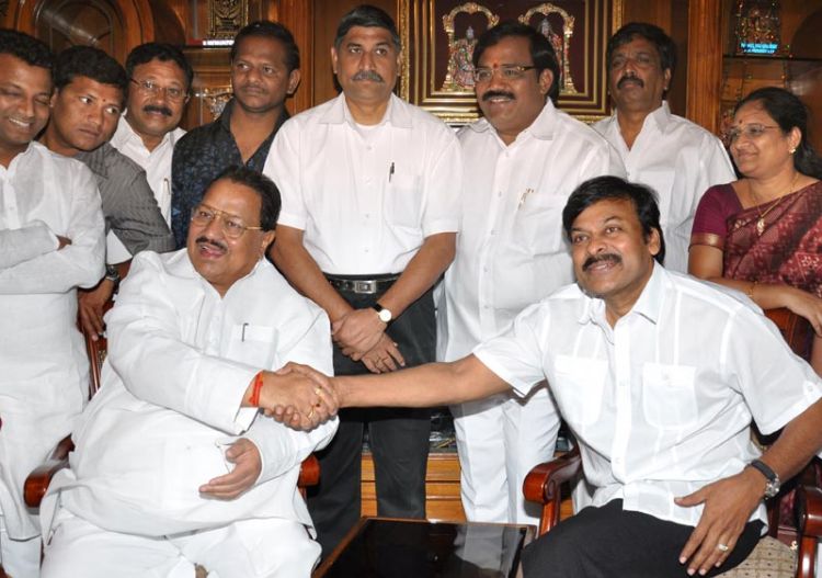 PCC president D.Srinivas paid a courtesy call on Wednesday to Prajarajyam chief Chiranjeevi at his residence in Jubilee Hills to convey his wishes.