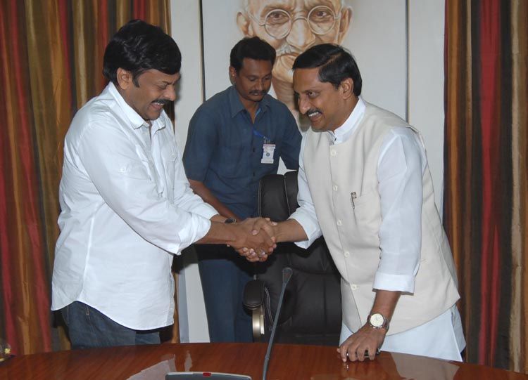 Praja Rajyam Party MLAs, led by party president K Chiranjeevi called on Chief Minister N.Kiran Kumar Reddy at his camp office in Hyderabad on Wednesday. INN Photos