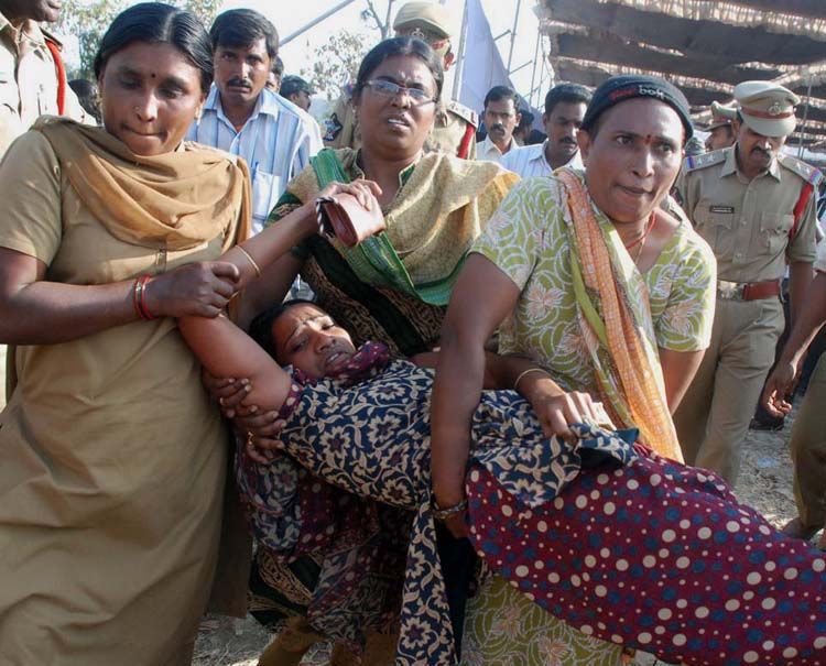 Women arrested for raising Pro-Telangana slogans infront of Chief Minister Kiran Kumar Reddy in Rachabanda meeting in Rayanigudem village of Warangal district on Thursday.