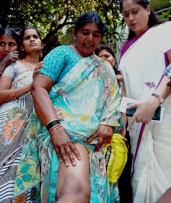 TRS MP Vijayashanti lodges a complaint before the State Human Rights Commission against the brutalities of police who beat up people protesting against a Racha Banda programme at Dubbak in Medak district, in Hyderabad on Thursday. INN Photos