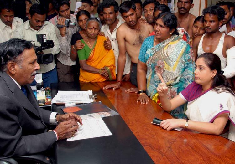 TRS MP Vijayashanti lodges a complaint before the State Human Rights Commission against the brutalities of police who beat up people protesting against a Racha Banda programme at Dubbak in Medak district, in Hyderabad on Thursday. INN Photos