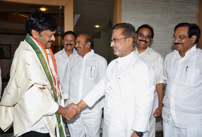 Several Congress leaders called on Prajarajyam chief Chiranjeevi as a courtesy call at his residence in Jubilee Hills on Friday.