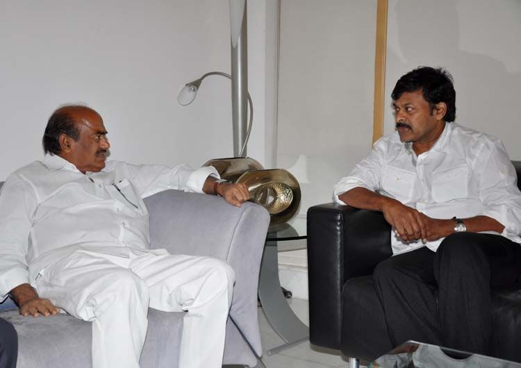 Former minister and senior Congress leader JC Diwakar Reddy called on Prajarajyam chief Chiranjeevi as a courtesy call at his residence in Jubilee Hills on Friday.