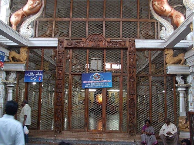 The main entrance into the hall of Veera Venkata Satyanarayan Swamy temple at Annavaram. File Photo