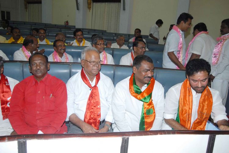 Though, the fisrt day of Assembly budget session begins on a soar note on Thursday, legislators of different parties cheerfully greeted each other before unruly scenes unveiled. Here are some pictures to cheer.
