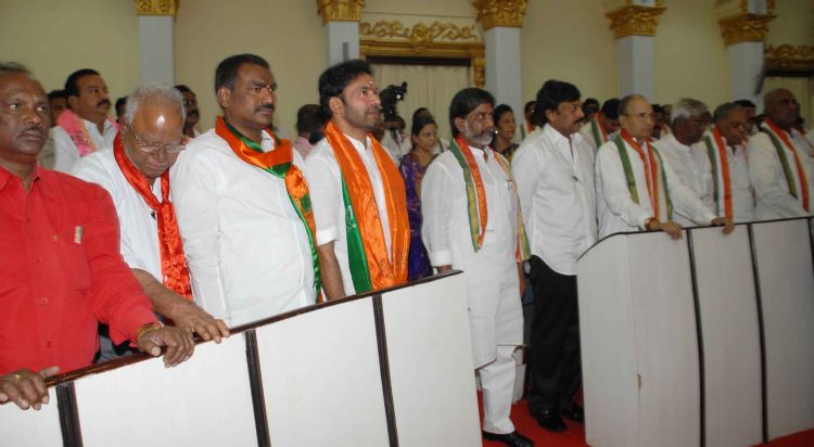 Though, the fisrt day of Assembly budget session begins on a soar note on Thursday, legislators of different parties cheerfully greeted each other before unruly scenes unveiled. Here are some pictures to cheer.