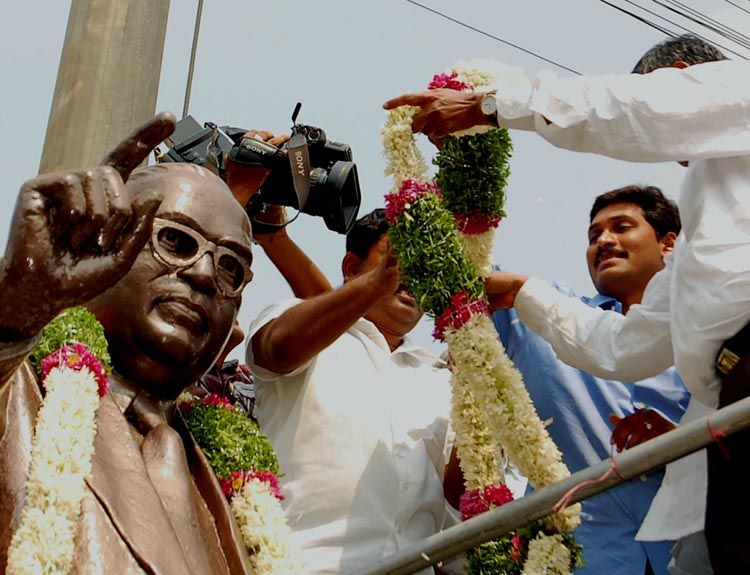 Former Congress MP Y.S.Jagan Mohan Reddy offering tributes to Dr BR Ambedkar before sitting on seven-day hunger strike, demanding Fees reimbursements for the students of SC,ST,BC and Minorities in Hyderabad on Friday. INN photos