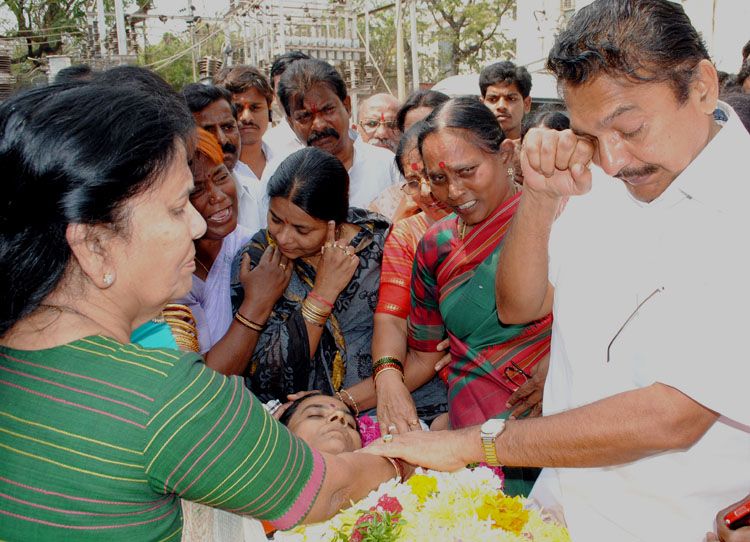 Bharatiya Janata Party leaders Bandaru Dattatreya, Ch Vidyasagar Rao and others pays their respects to the body of Vanam Jhansi Rani who was killed in a road mishap in Mahabubnagar on Saturday. Her body was brought to the BJP headquarters at Nampally to enable party workers pay their respects. INN Photos