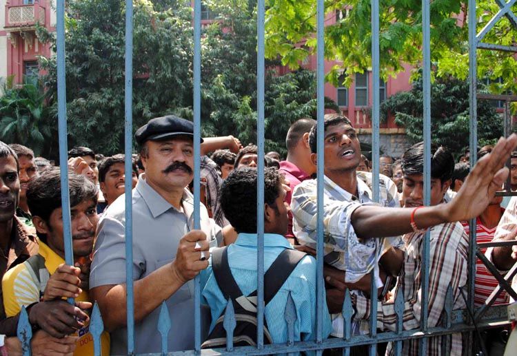 City College students protest for separate Telangana Bill as part of the call given by the Students’ Joint Action Committee in Hyderabad on Monday. INN Photos