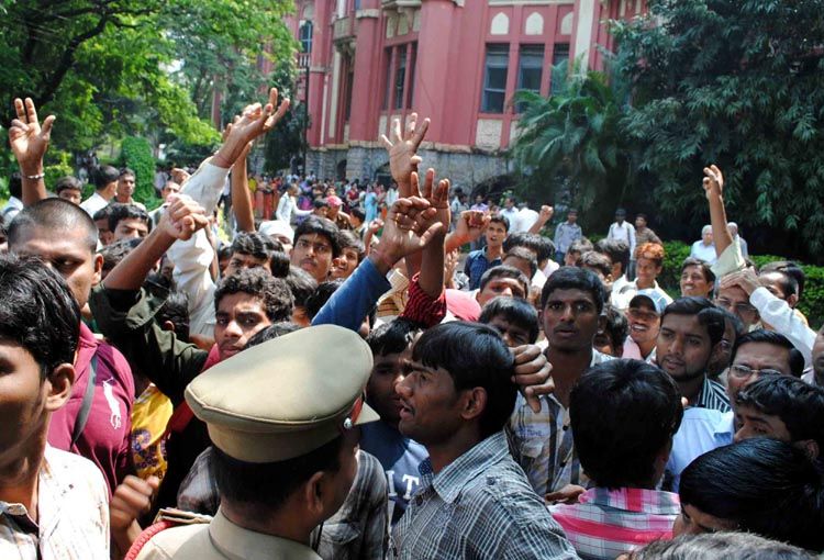 City College students protest for separate Telangana Bill as part of the call given by the Students’ Joint Action Committee in Hyderabad on Monday. INN Photos