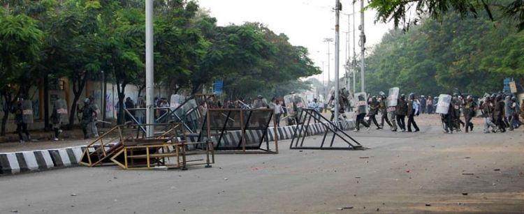 Students of Nizam College made an abortive bid to march to assembly on Monday in response to a call by TSJAC to seige assembly. Police have to use teargas to disperse the students. With the action and counter action the surroundings of Basheerbagh looks like a battle zone. INN Photos.