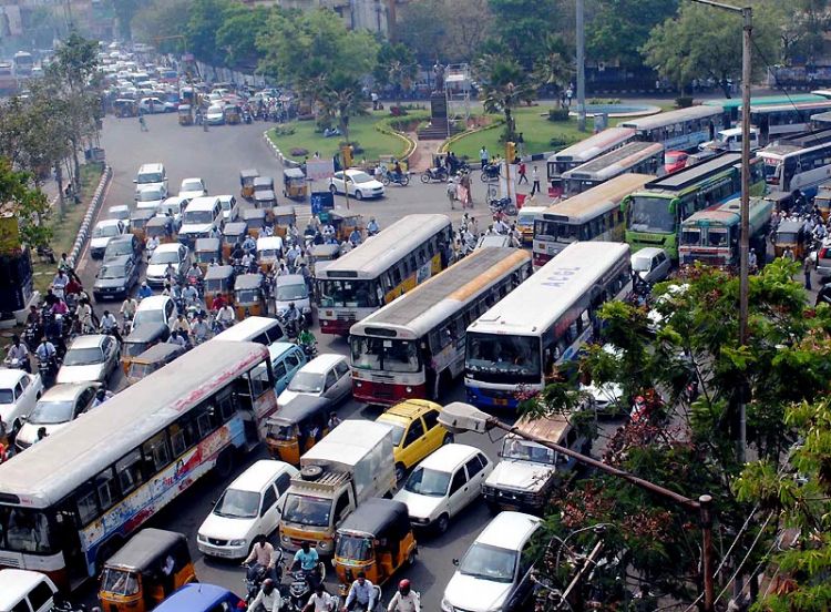 Traffic jams rule the day as police blockade main arteries of the city due to the 'chalo Assembly call given by Student's JAC in Hyderabad on Monday. INN Photos