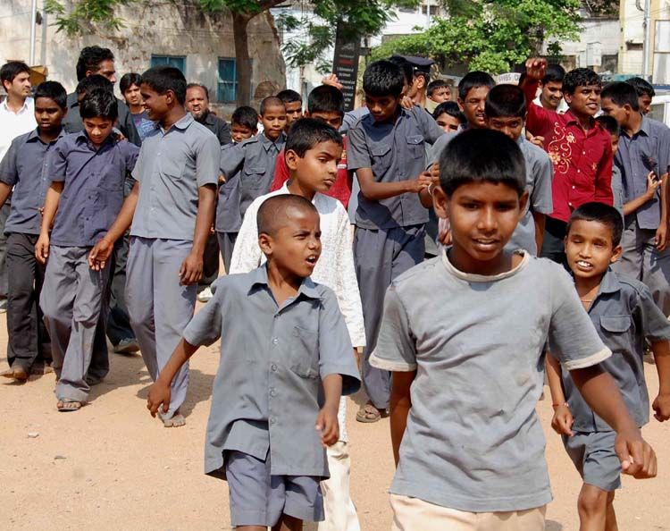 Visually challenged students of a blind school blockade the road at Darusshifa in support of the 48-hour bandh call for a separate Telangana state, in Hyderabad on Tuesday. INN Photos