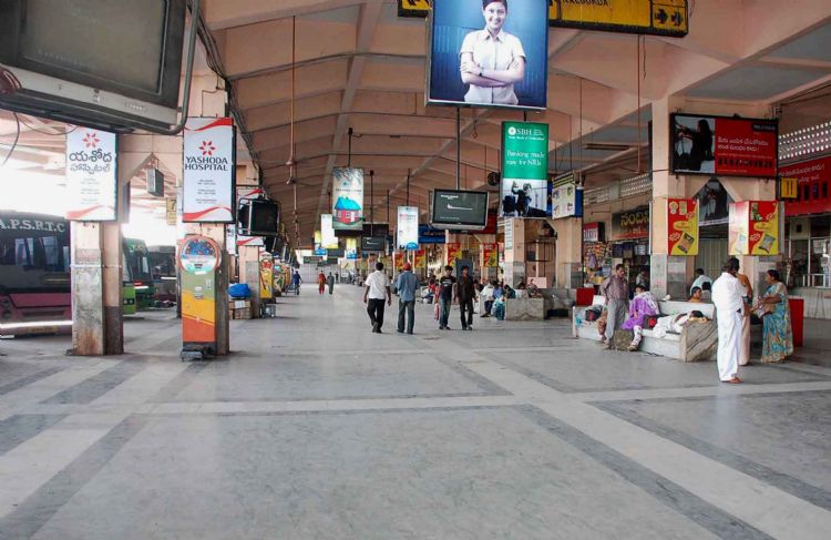 The ever busy Imlibun Bus Station wore a deserted look as RTC has cancelled most of the services following the 48-hour bandh call given by the Telangana Political Joint Action Committee to press the Centre to introduce a separate statehood Bill in Parliament, in Hyderabad on Tuesday. INN Photos