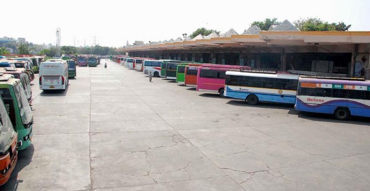 The ever busy Imlibun Bus Station wore a deserted look as RTC has cancelled most of the services following the 48-hour bandh call given by the Telangana Political Joint Action Committee to press the Centre to introduce a separate statehood Bill in Parliament, in Hyderabad on Tuesday. INN Photos