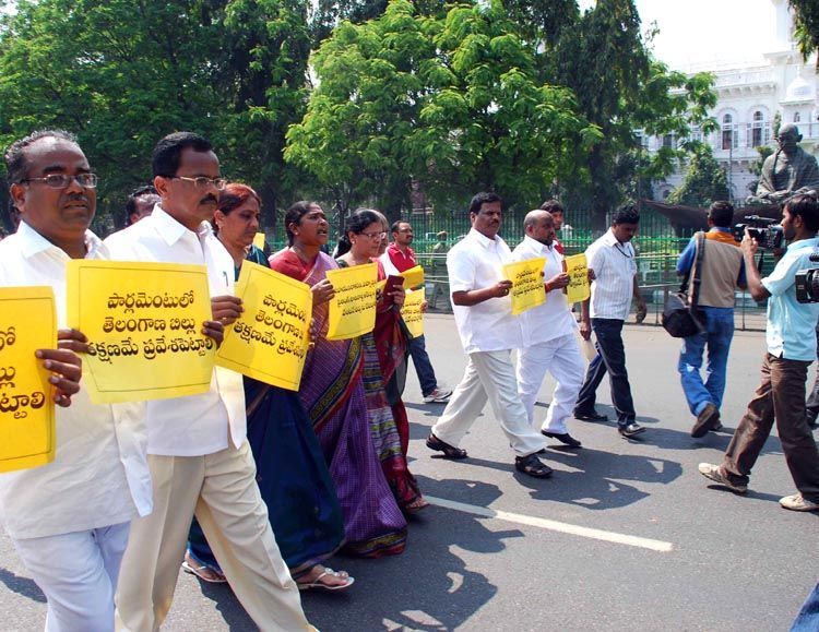 The Telangana TDP MLAs walked out from the Assembly just before Budget presentation speech, shouting slogans like ‘Jai Telangana’ and ‘Congress down down’, demanding a separate Telangana Bill in Parliament on Wednesday. Later they were arrested for organising a ‘rasta roko’ at Lakdi-ka-pul.