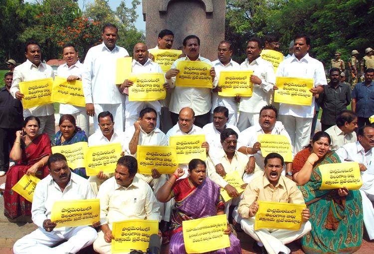 The Telangana TDP MLAs walked out from the Assembly just before Budget presentation speech, shouting slogans like ‘Jai Telangana’ and ‘Congress down down’, demanding a separate Telangana Bill in Parliament on Wednesday. Later they were arrested for organising a ‘rasta roko’ at Lakdi-ka-pul.